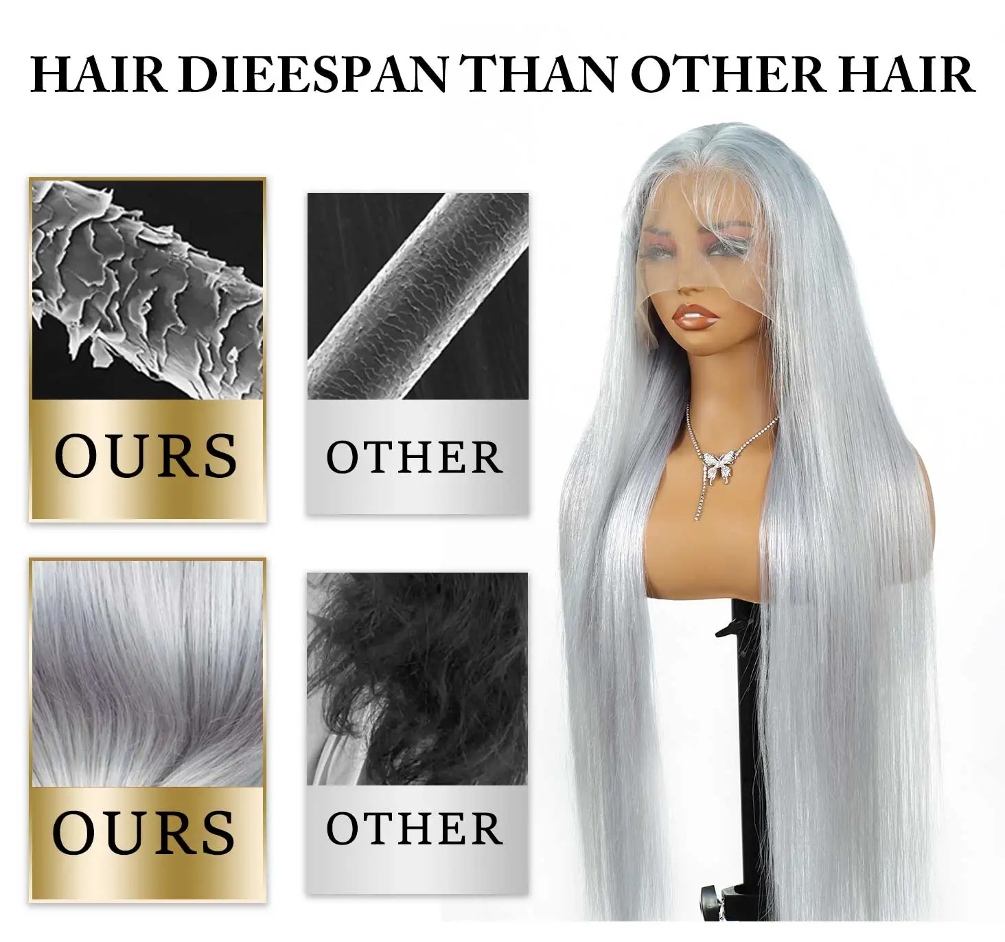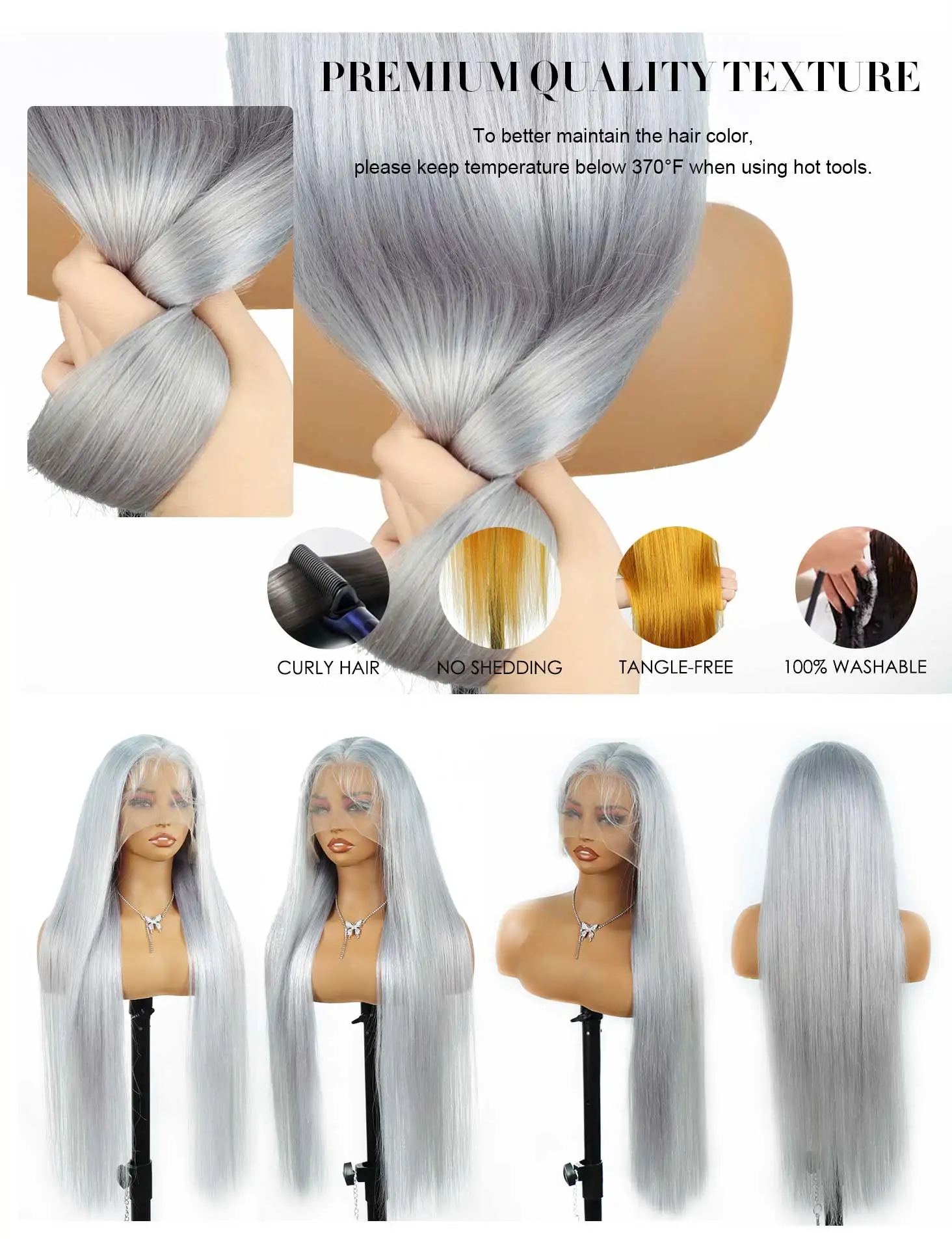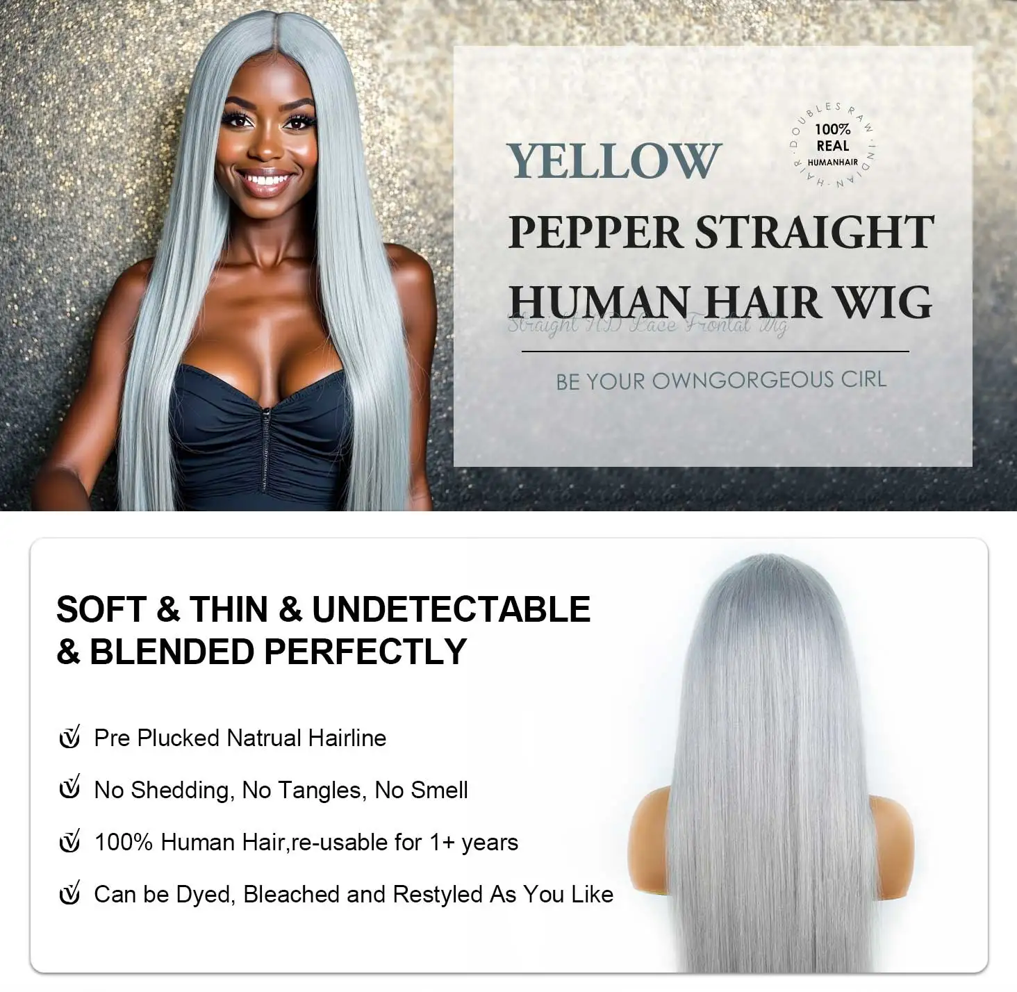 Name: Grey Straight Wave Lace Frontal Human Hair Wig