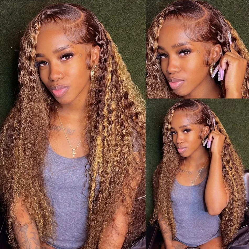 32 40 Inch 4 27 Highligh Deep Wave 13X6 Hd Lace Front Wig 100% Human Hair Ombre Blonde Curly 13×4 Lace Frontal Wigs 200 Density