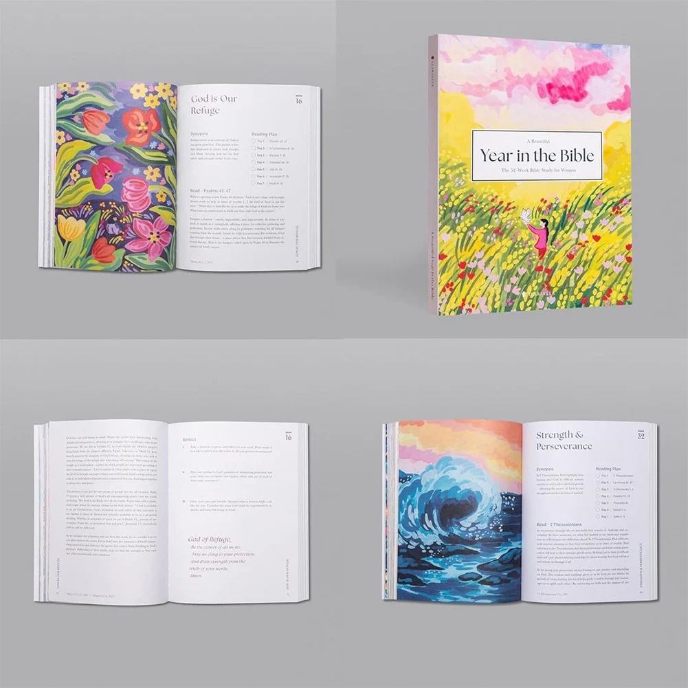 Feature: 1. Explore Diverse Themes: A Beautiful Year in the Bible Book offers 365 daily devotions that help you understand biblical work, practice your faith, find courage in adversity, and appreciate the beauty of serving others. 2. Immersive Visual Experience: The 52-Week Bible Study for Women Book features captivating illustrations and clear text formatting, providing an engaging and easy-to-read experience as you journey through its weekly themes. 3. 52-Week Spiritual Journey: Dive deep into biblical teachings with the Bible Study Book, designed specifically for women. This book guides you through a year-long exploration with thought-provoking prompts and weekly reading recommendations. 4. Practical and Thoughtful Gift: The Paper Book edition of A Beautiful Year in the Bible is a perfect gift, offering daily inspiration and encouragement throughout the year. It’s a thoughtful way to cherish and grow together with loved ones. 5. Nourish Your Soul: Enhance your spiritual journey with the Paperback version of A Beautiful Year in the Bible. This year-long guided Bible study provides profound inspirational readings and structured personal growth practices to transform your faith. Specification: