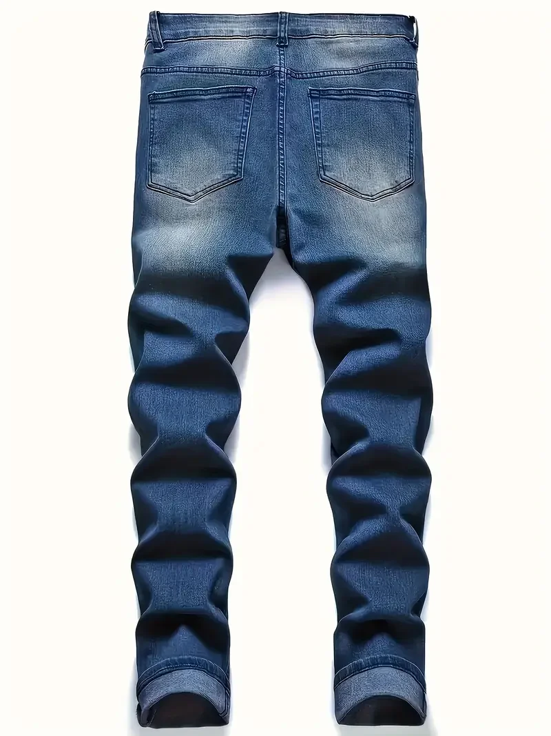 Men’S Distressed Fashion Jeans – Street Style, Comfortable Stretch Denim with Ripped Detail, Versatile for All Seasons, Everyday